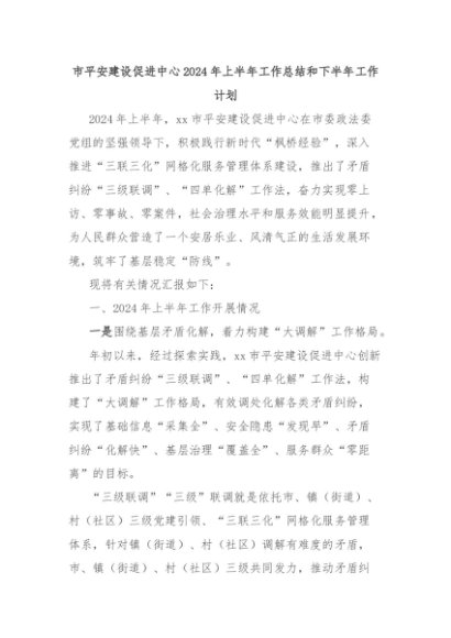 【七哥公文】2024年:市平安建设促进中心2024年上半年工作总结和下半年工作计划+更多免费公文+VX:QiGeGongWen2024