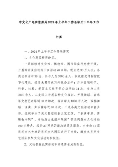 【七哥公文】2024年:市文化广电和旅游局2024年上半年工作总结及下半年工作打算+更多免费公文+VX:QiGeGongWen2024