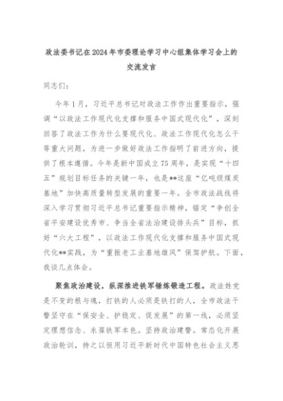 【七哥公文】2024年:政法委书记在2024年市委理论学习中心组集体学习会上的交流发言+更多免费公文+VX:QiGeGongWen2024