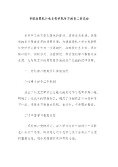 / 【七哥公文】2024年:市财政局机关党支部党纪学习教育工作总结+更多免费公文+VX:QiGeGongWen2024