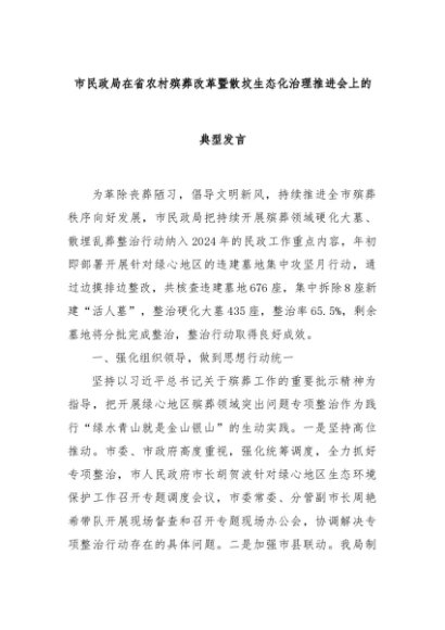【七哥公文】2024年:市民政局在省农村殡葬改革暨散坟生态化治理推进会上的典型发言+更多免费公文+VX:QiGeGongWen2024
