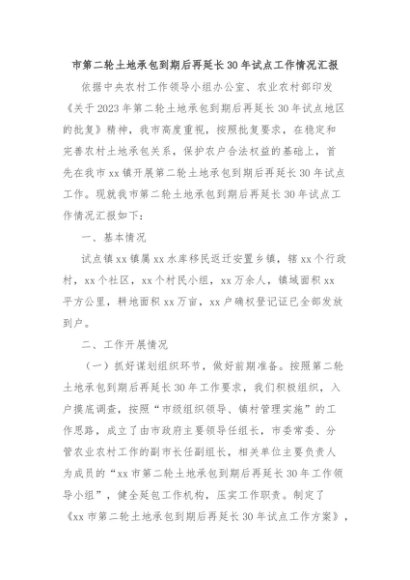【七哥公文】2024年:市第二轮土地承包到期后再延长30年试点工作情况汇报+更多免费公文+VX:QiGeGongWen2024