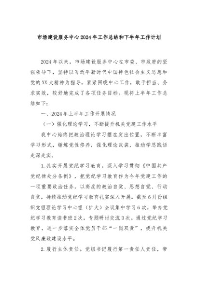 【七哥公文】2024年:市场建设服务中心2024年工作总结和下半年工作计划+更多免费公文+VX:QiGeGongWen2024