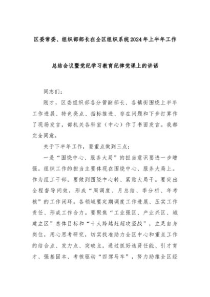 【七哥公文】2024年:区委常委、组织部部长在全区组织系统2024年上半年工作总结会议暨党纪学习教育纪律党课上的讲话+更多免费公文+VX:QiGeGongWen2024