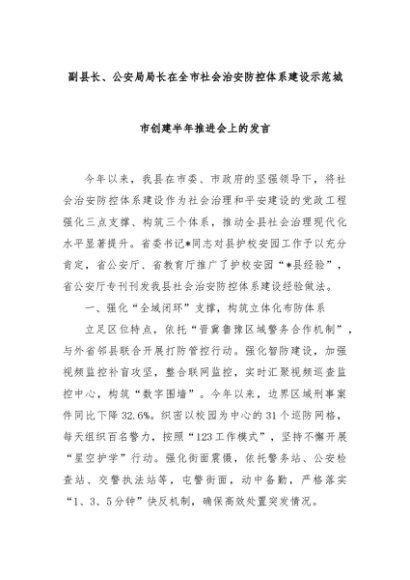 【七哥公文】2024年:副县长、公安局局长在全市社会治安防控体系建设示范城市创建半年推进会上的发言+更多免费公文+VX:QiGeGongWen2024
