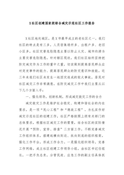 / 【七哥公文】2024年:X社区创建国家级综合减灾示范社区工作报告+更多免费公文+VX:QiGeGongWen2024