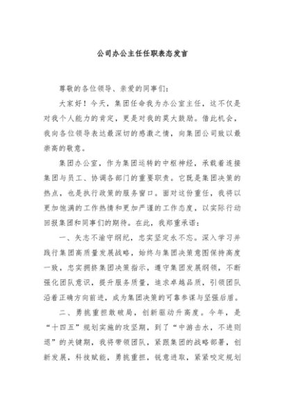 / 【七哥公文】2024年:公司办公主任任职表态发言+更多免费公文+VX:QiGeGongWen2024