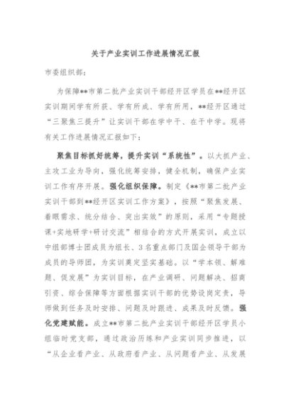 / 【七哥公文】2024年:关于产业实训工作进展情况汇报+更多免费公文+VX:QiGeGongWen2024