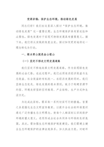 / 【七哥公文】2024年:党课讲稿:保护生态环境,推动绿色发展+更多免费公文+VX:QiGeGongWen2024
