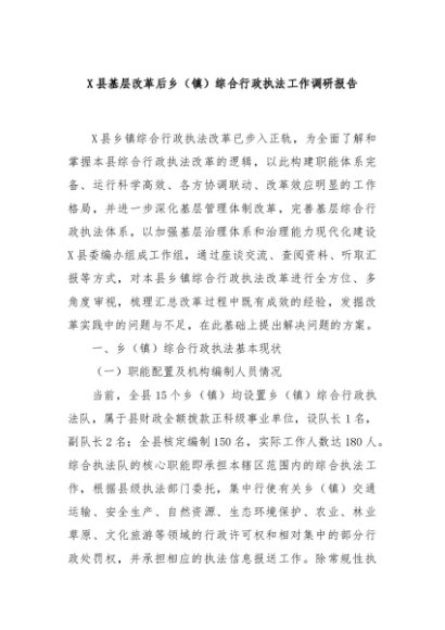 / 【七哥公文】2024年:X县基层改革后乡(镇)综合行政执法工作调研报告+更多免费公文+VX:QiGeGongWen2024