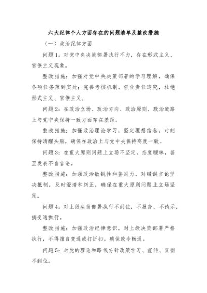 【七哥公文】2024年:六大纪律个人方面存在的问题清单及整改措施+更多免费公文+VX:QiGeGongWen2024