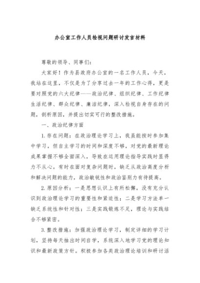 / 【七哥公文】2024年:办公室工作人员检视问题研讨发言材料+更多免费公文+VX:QiGeGongWen2024