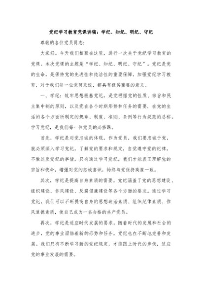【七哥公文】2024年:党纪学习教育党课讲稿:学纪、 知纪、 明纪、 守纪+更多免费公文+VX:QiGeGongWen2024