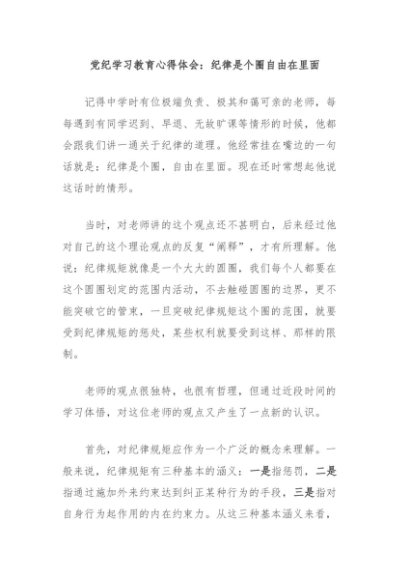 【七哥公文】2024年:党纪学习教育心得体会:纪律是个圈自由在里面+更多免费公文+VX:QiGeGongWen2024