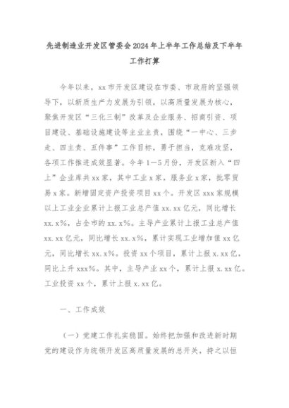 【七哥公文】2024年:先进制造业开发区管委会2024年上半年工作总结及下半年工作打算+更多免费公文+VX:QiGeGongWen2024