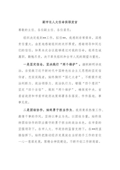 / 【七哥公文】2024年:副市长人大任命供职发言+更多免费公文+VX:QiGeGongWen2024