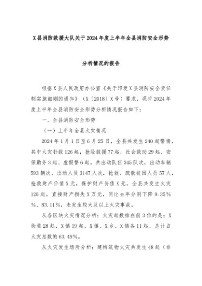 【七哥公文】2024年:X县消防救援大队关于2024年度上半年全县消防安全形势分析情况的报告+更多免费公文+VX:QiGeGongWen2024