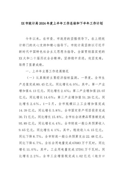 【七哥公文】2024年:XX市统计局2024年度上半年工作总结和下半年工作计划+更多免费公文+VX:QiGeGongWen2024