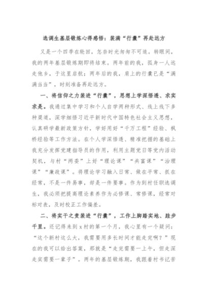 / 【七哥公文】2024年:选调生基层锻炼心得感悟:装满“行囊”再赴远方+更多免费公文+VX:QiGeGongWen2024