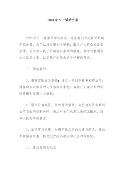 【七哥公文】2024年:2024年八一活动方案+更多免费公文+VX:QiGeGongWen2024