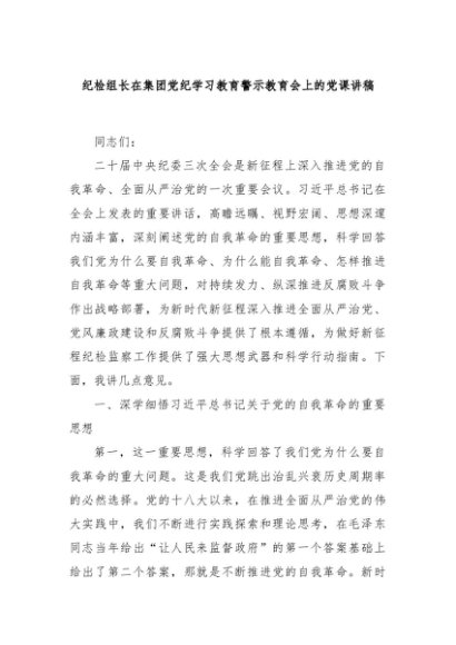 / 【七哥公文】2024年:纪检组长在集团党纪学习教育警示教育会上的党课讲稿+更多免费公文+VX:QiGeGongWen2024
