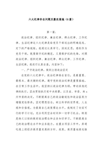 / 【七哥公文】2024年:(6篇)六大纪律存在问题及整改措施+更多免费公文+VX:QiGeGongWen2024