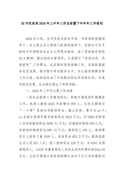 【七哥公文】2024年:XX市民政局2024年上半年工作总结暨下半年年工作谋划+更多免费公文+VX:QiGeGongWen2024