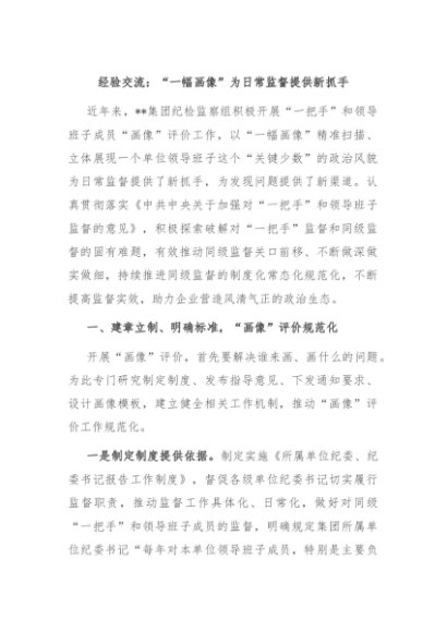 / 【七哥公文】2024年:经验交流:“一幅画像”为日常监督提供新抓手+更多免费公文+VX:QiGeGongWen2024