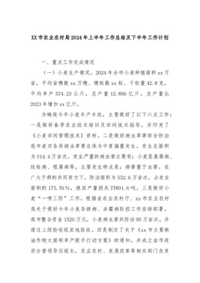 【七哥公文】2024年:XX市农业农村局2024年上半年工作总结及下半年工作计划+更多免费公文+VX:QiGeGongWen2024
