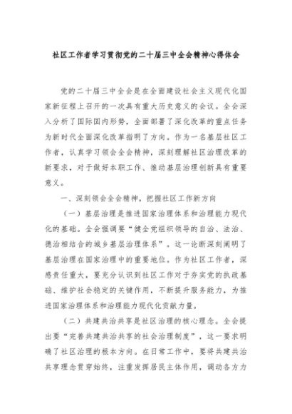 / 【七哥公文】2024年:社区工作者学习贯彻党的二十届三中全会精神心得体会+更多免费公文+VX:QiGeGongWen2024