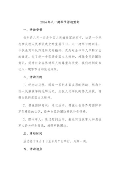 【七哥公文】2024年:2024年八一建军节活动策划+更多免费公文+VX:QiGeGongWen2024