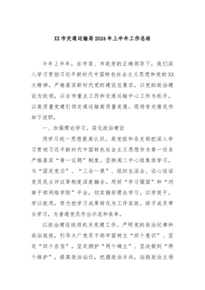 / 【七哥公文】2024年:XX市交通运输局2024年上半年工作总结+更多免费公文+VX:QiGeGongWen2024