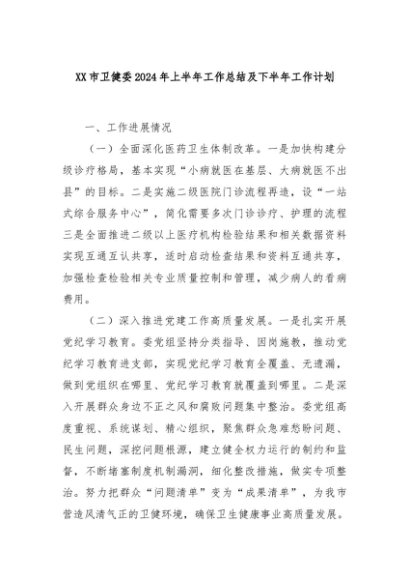 【七哥公文】2024年:XX市卫健委2024年上半年工作总结及下半年工作计划+更多免费公文+VX:QiGeGongWen2024