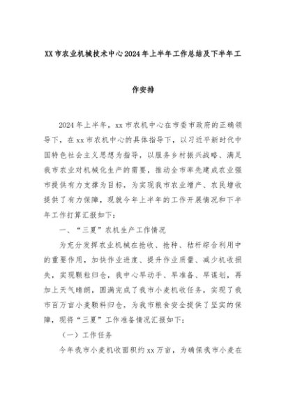【七哥公文】2024年:XX市农业机械技术中心2024年上半年工作总结及下半年工作安排+更多免费公文+VX:QiGeGongWen2024