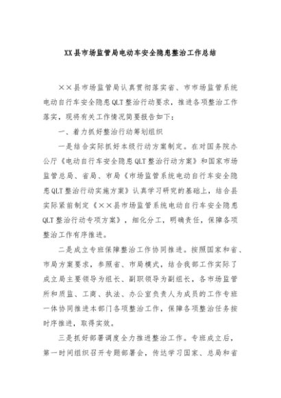 / 【七哥公文】2024年:XX县市场监管局电动车安全隐患整治工作总结+更多免费公文+VX:QiGeGongWen2024