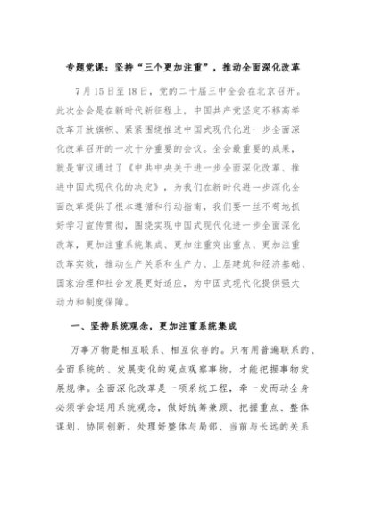 / 【七哥公文】2024年:专题党课:坚持“三个更加注重”,推动全面深化改革+更多免费公文+VX:QiGeGongWen2024