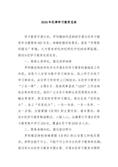 / 【七哥公文】2024年:2024年纪律学习教育总结+更多免费公文+VX:QiGeGongWen2024
