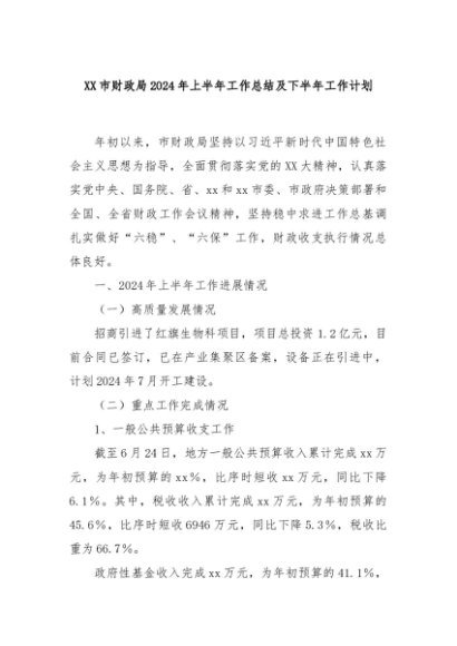 【七哥公文】2024年:XX市财政局2024年上半年工作总结及下半年工作计划+更多免费公文+VX:QiGeGongWen2024
