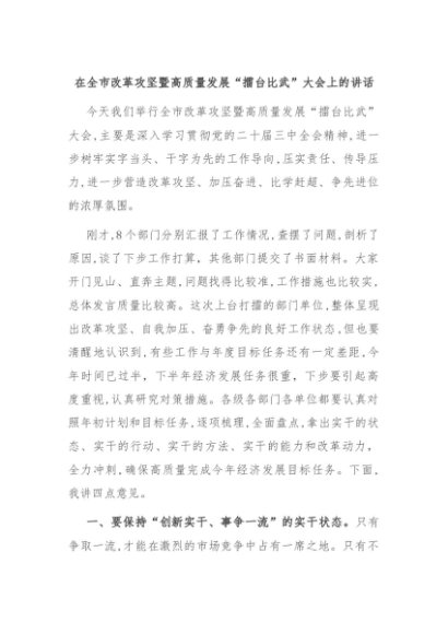 【七哥公文】2024年:在全市改革攻坚暨高质量发展“擂台比武”大会上的讲话+更多免费公文+VX:QiGeGongWen2024