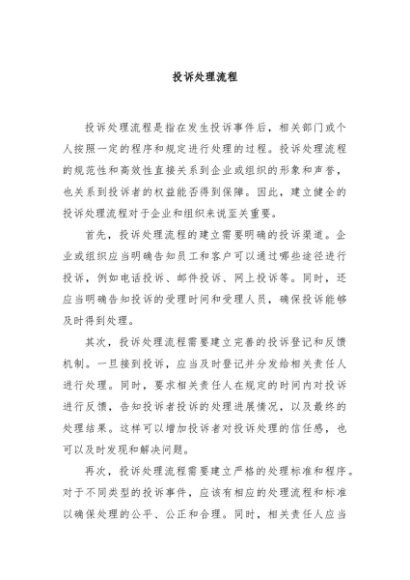 / 【七哥公文】2024年:投诉处理流程+更多免费公文+VX:QiGeGongWen2024