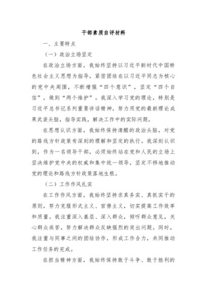 【七哥公文】2024年:干部素质自评材料+更多免费公文+VX:QiGeGongWen2024