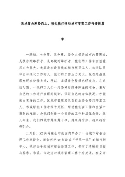 【七哥公文】2024年:某城管局乘势而上、稳扎稳打推动城市管理工作再谱新篇章+更多免费公文+VX:QiGeGongWen2024