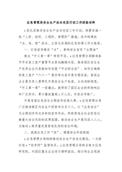 / 【七哥公文】2024年:应急管理局安全生产治本攻坚行动工作经验材料+更多免费公文+VX:QiGeGongWen2024