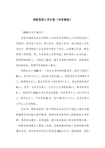 / 【七哥公文】2024年:残联党组工作汇报(向巡察组)+更多免费公文+VX:QiGeGongWen2024