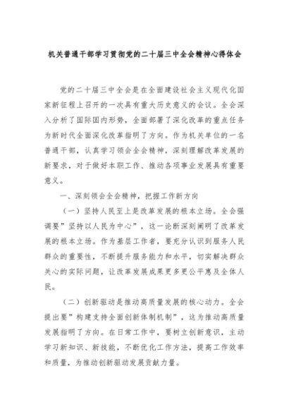【七哥公文】2024年:机关普通干部学习贯彻党的二十届三中全会精神心得体会+更多免费公文+VX:QiGeGongWen2024