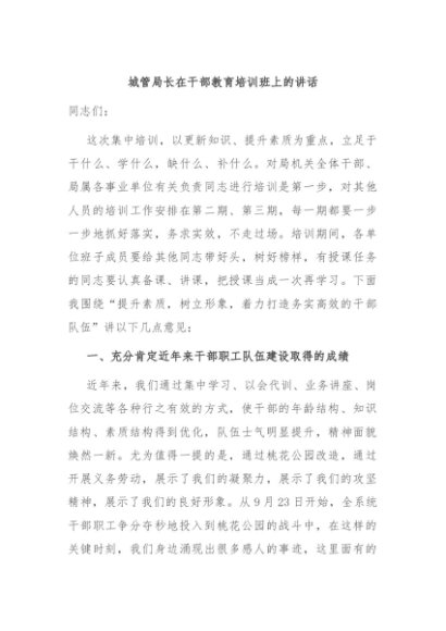 / 【七哥公文】2024年:城管局长在干部教育培训班上的讲话+更多免费公文+VX:QiGeGongWen2024