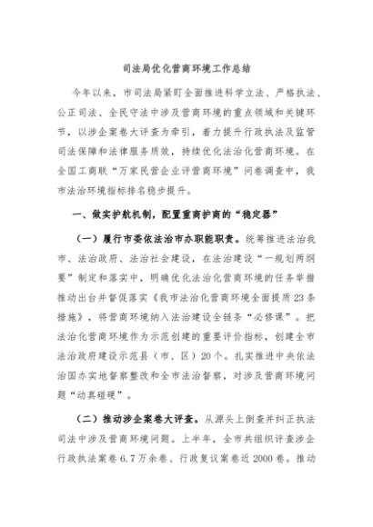 / 【七哥公文】2024年:司法局优化营商环境工作总结+更多免费公文+VX:QiGeGongWen2024
