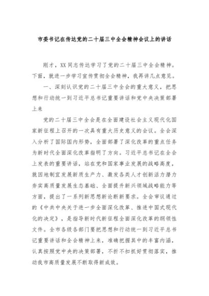 / 【七哥公文】2024年:市委书记在传达党的二十届三中全会精神会议上的讲话+更多免费公文+VX:QiGeGongWen2024