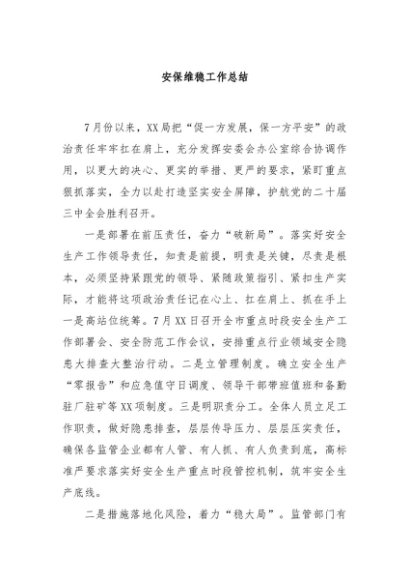 / 【七哥公文】2024年:安保维稳工作总结+更多免费公文+VX:QiGeGongWen2024