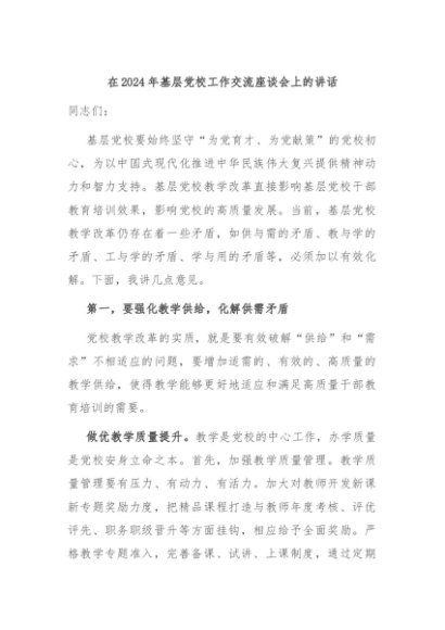 / 【七哥公文】2024年:在2024年基层党校工作交流座谈会上的讲话+更多免费公文+VX:QiGeGongWen2024